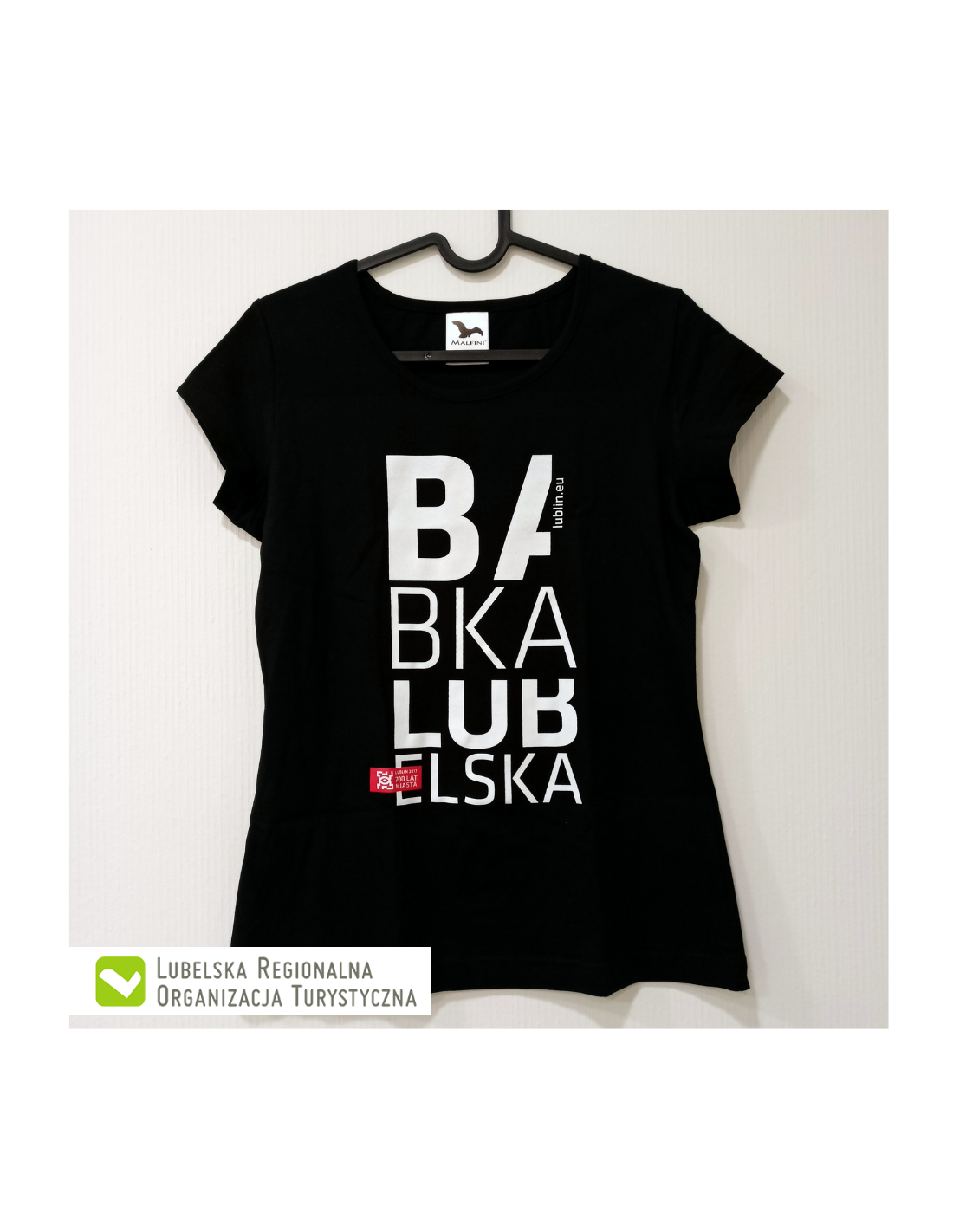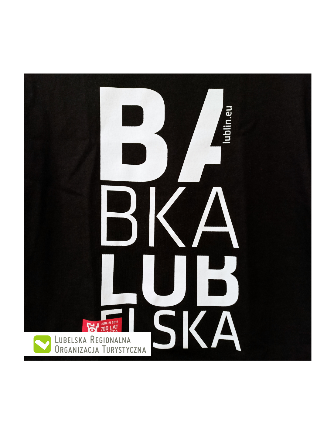 Czarna koszulka z logo Lublina i napisem Babka Lubelska.