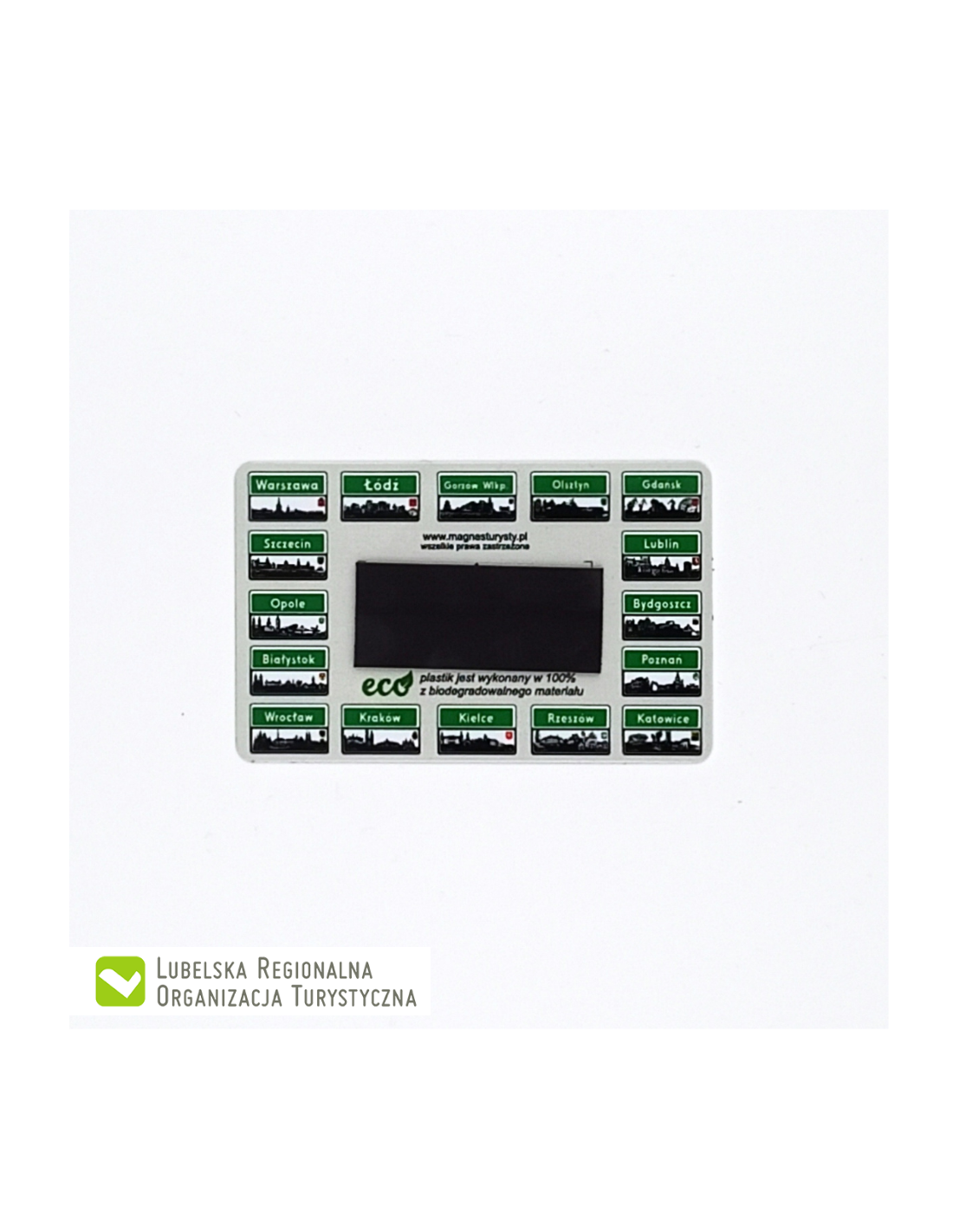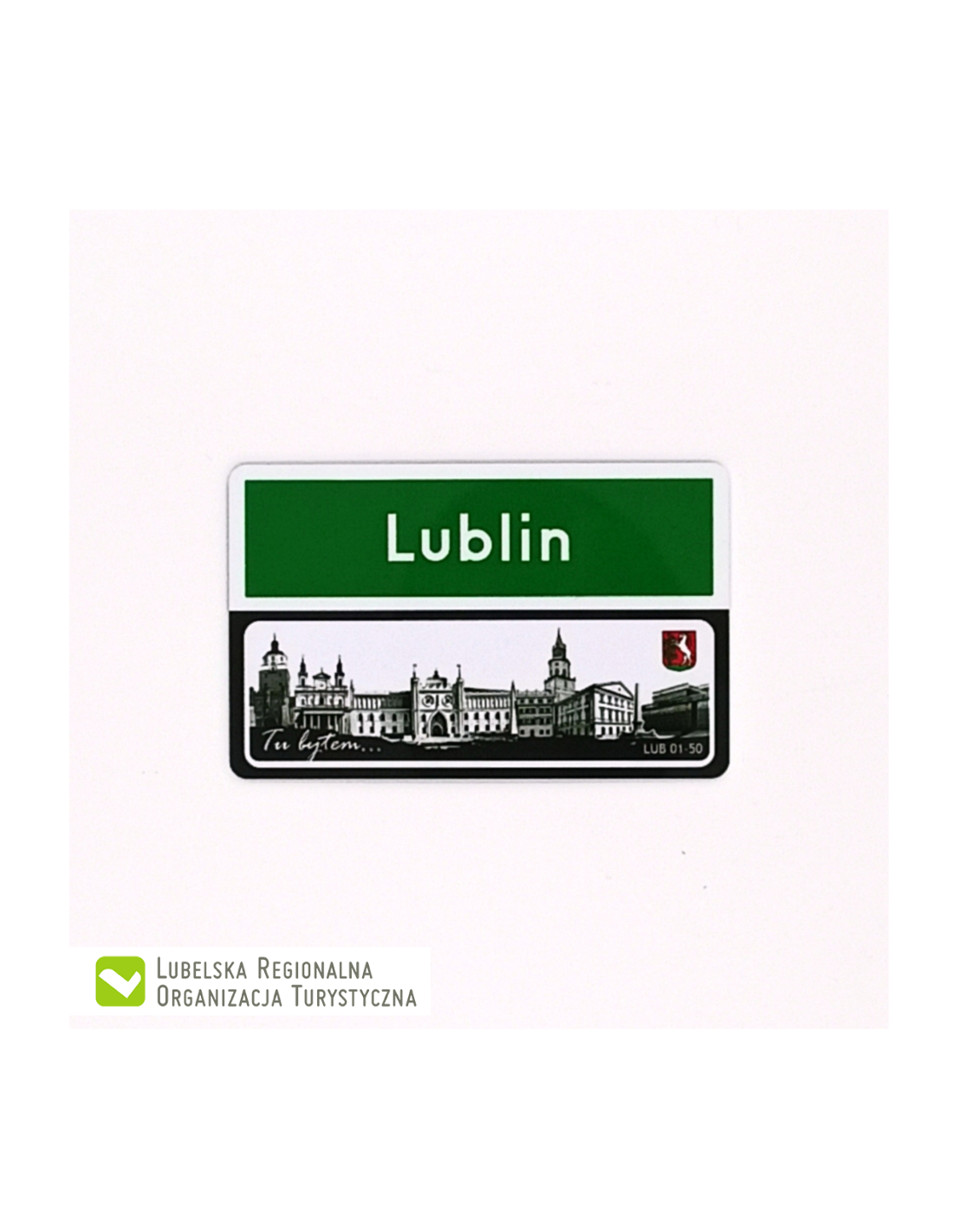 Magnes Turysty z grafiką prezentującą zabytki Lublina.