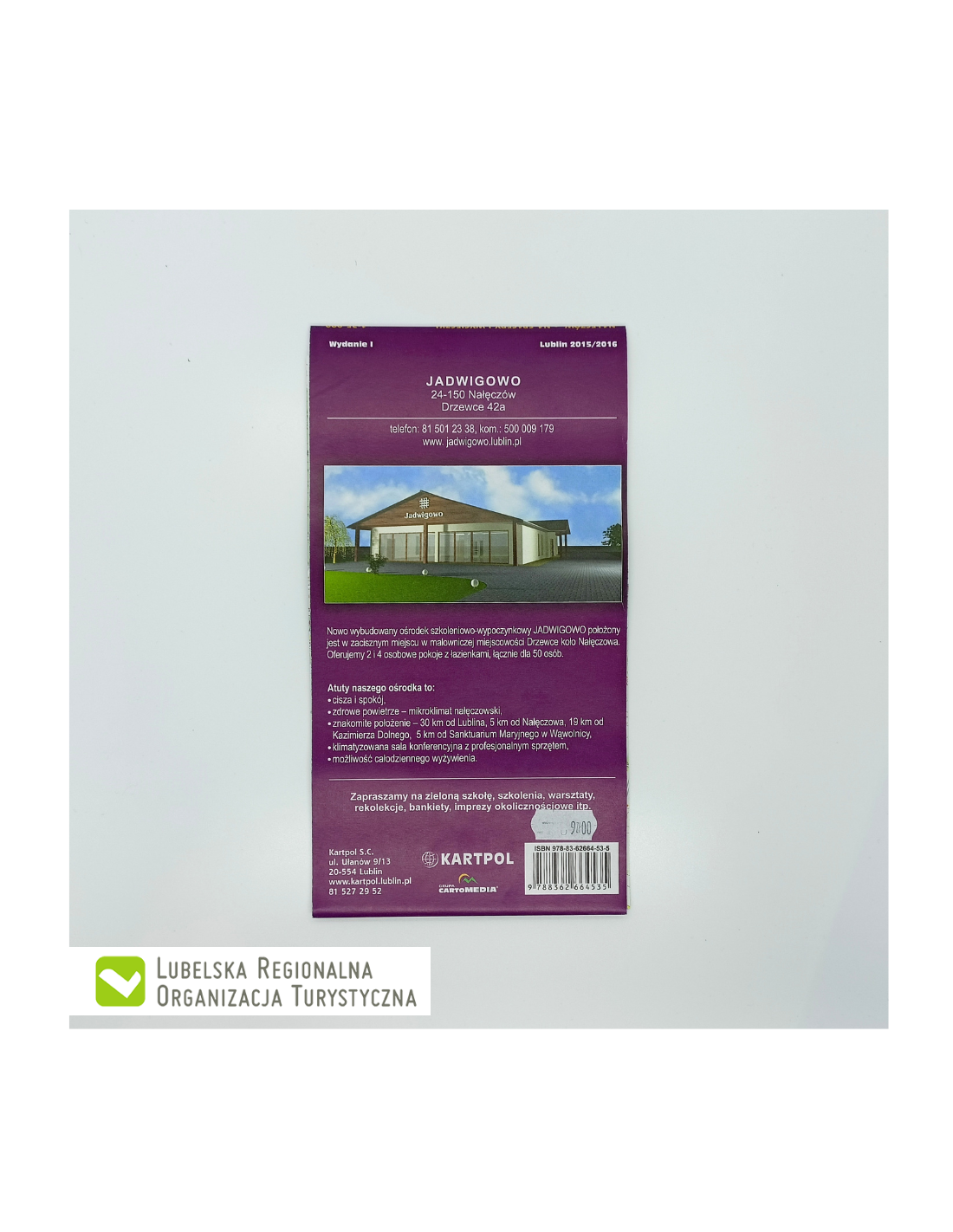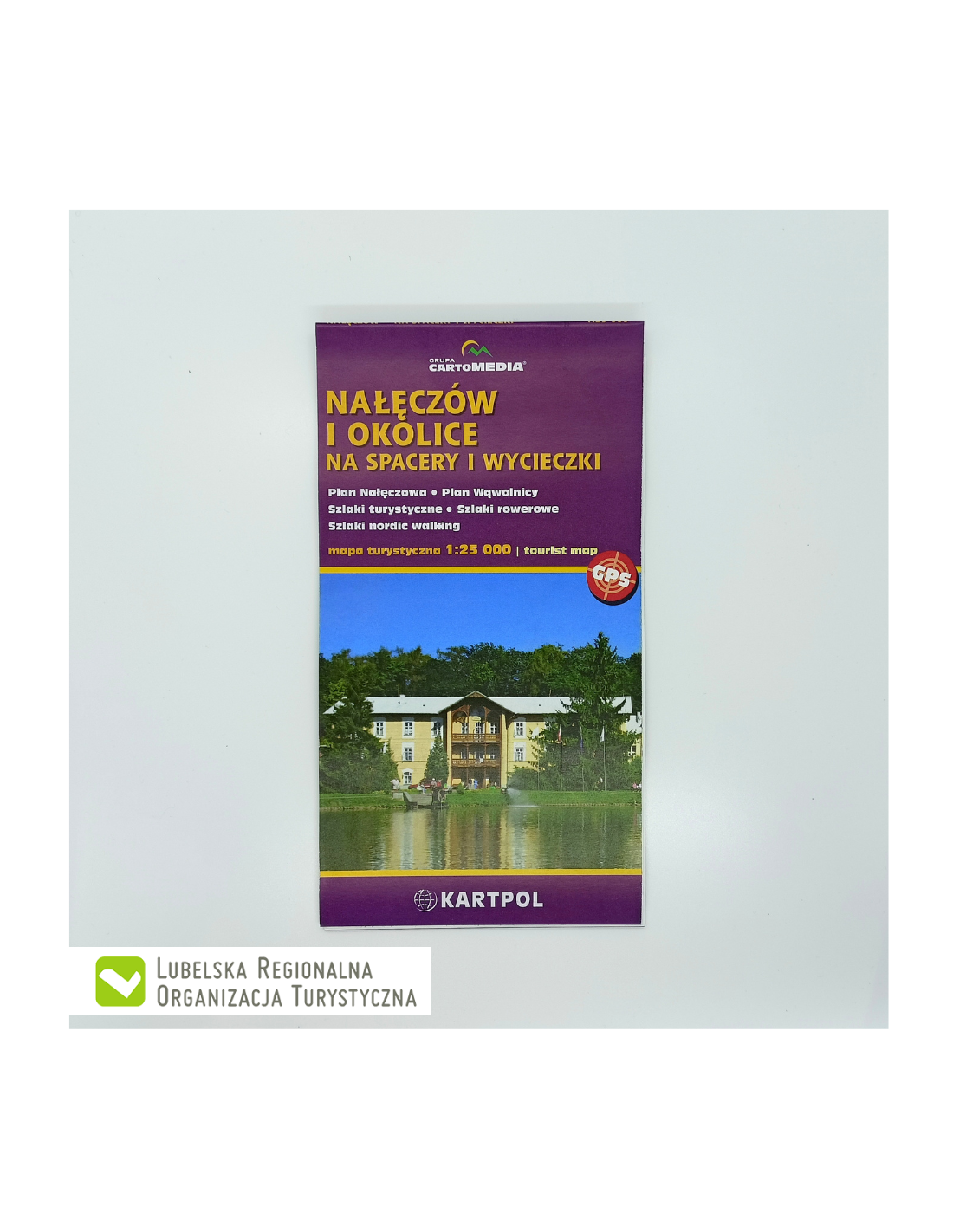 Mapa turystyczna okolic Nałęczowa w skali 1:25 000. Bardzo dokładnie odwzorowuje ukształtowanie terenu (poziomice co 2,5 m). Pokrycie terenu uwzględnia lasy, parki, sady, chmielniki, łąki i zarośla nadrzeczne. Bardzo bogata sieć obiektów turystycznych, obiektów administracji publicznej oraz zabytków. Na odwrocie mapy opisano środowisko przyrodnicze okolic Nałęczowa, informacje o najciekawszych miejscowościach wraz z krótkim opisem ich atrakcji oraz opisano przebieg szlaków turystyczne regionu. Idealna mapa zarówno dla kuracjuszy przebywających w Nałęczowie jak i dla turystów pragnących odwiedzić tereny nieco spokojniejsze i rzadziej odwiedzane od pobliskiego, obleganego Kazimierza Dolnego.