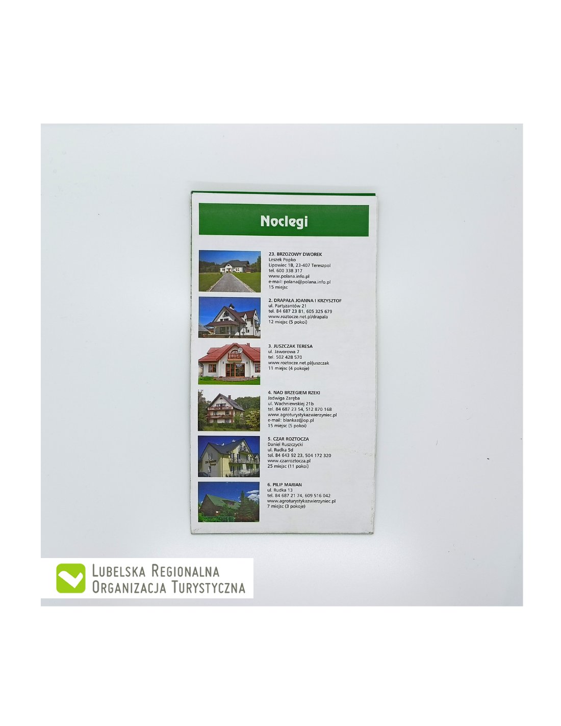 Mapa przedstawia obszar Roztocza Zachodniego, Roztocza Środkowego i Równiny Biłgorajskiej (Puszczy Solskiej z Lasami Janowskimi) od Szastarki na północnym zachodzie po Lubyczę Królewską na południowym wschodzie i od Rudnika nad Sanem i Krzeszowa na południowym zachodzie po Grabowiec na północnym wschodzie. W zasięgu mapy znajdują się takie ważne miejscowości turystyczne, jak: Zamość, Biłgoraj, Frampol, Janów Lubelski, Józefów, Krasnobród, Susiec, Szczebrzeszyn i Zwierzyniec oraz obszar Roztoczańskiego Parku Narodowego. Na mapie zaznaczone są obiekty o walorach turystycznych i rekreacyjnych oraz aktualne przebiegi szlaków turystycznych: pieszych, rowerowych, konnych oraz kajakowych na tle sieci drogowej i kolejowej, pokrycia terenu i wód oraz obszarów ochrony przyrody.