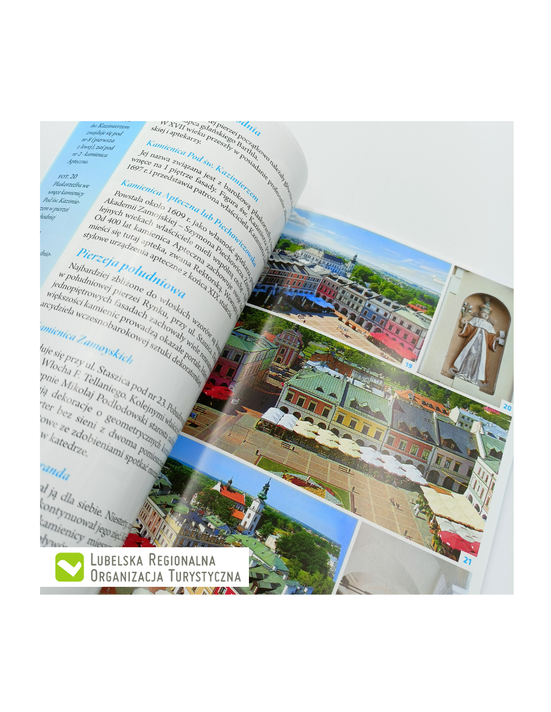 Przewodnik zawiera dużo historycznych ciekawostek, plan centrum miasta ze szlakami turystycznymi oraz wiele zdjęć pięknego Zamościa i Roztocza. W przewodniku znajdują się również adresy muzeów i miejsc godnych odwiedzenia oraz informacje o najważniejszych wydarzeniach kulturalnych.